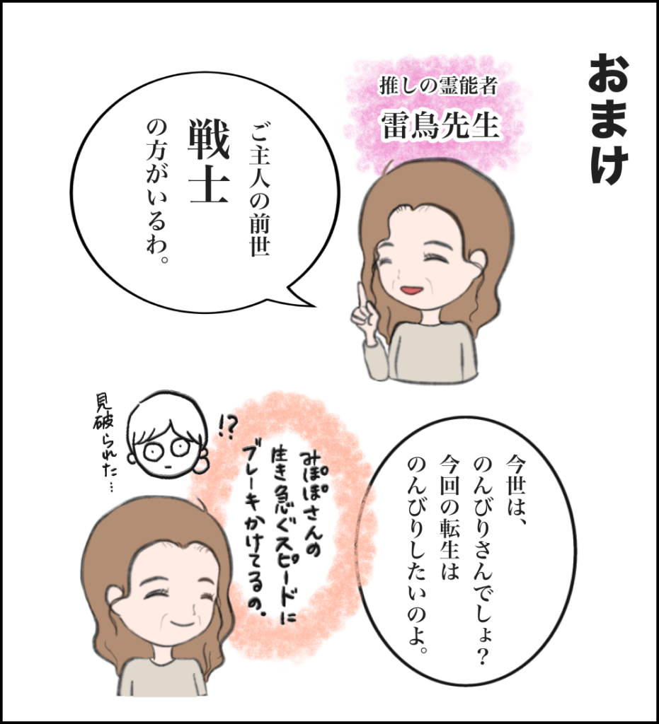 私も主人との前世の関係を調べて貰いたい気持ちになります。